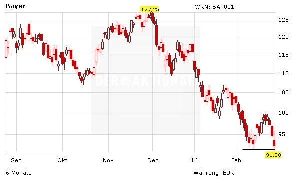 Nichtsdestotrotz haben sich viele Anleger am Morgen von der Bayer-Aktie getrennt. Der Wert verliert 2,6 Prozent auf 92,35 Euro und ist damit das Schlusslicht im DAX. Mehr zur Bayer-Aktie lesen Sie auch in der kommenden Ausgabe von DER AKTIONÄR, die am 2. März 2016 erscheint. Bereits Freitag ab 23 Uhr können Sie die neue Ausgabe außerdem bereits online lesen unter www.deraktionaer.de.