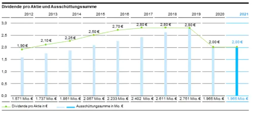Ausgehend vom Xetra-Schlusskurs vom Freitag bei 62,90 Euro errechnet sich daraus eine Dividendenrendite in Höhe von ordentlichen 3,2 Prozent.