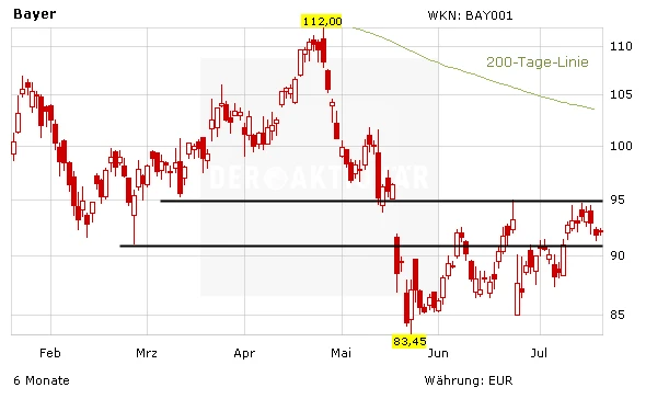 Die Bayer-Aktie hat zuletzt die Hürde bei 91 Euro nach oben genommen, ist aber vorerst am Widerstand bei 95 Euro gescheitert. Ein Sprung darüber würde weiteres technisches Potenzial bis in den Bereich der 200-Tage-Linie eröffnen. Scheitert die Übernahme eventuell doch, dürften einige Anleger bei der Aktie wieder zugreifen. Kommt es jedoch zu einer weiteren Angebotserhöhung, dürfte die Skepsis zu recht groß bleiben.