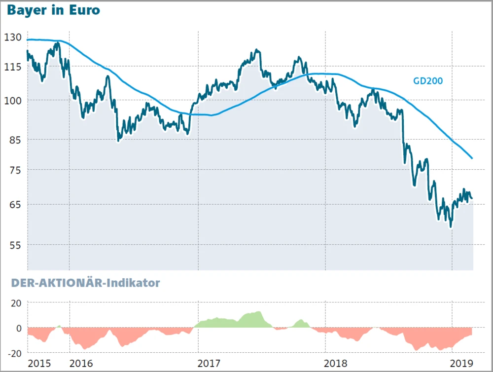 Bayer selbst geht von mindestens drei Jahren mit Prozessen rund um das Herbizid aus, also womöglich bis in das Jahr 2022 hinein. Da in den nächsten Monaten besonders wichtige Glyphosat-Prozesse anstehen, könnte sich das Jahr 2019 für den Bayer-Konzern in der Rückschau als Entscheidungs- und Wendejahr herausstellen. Aus charttechnischer Sicht wäre es wichtig, dass der Titel die Unterstützung bei 60 Euro verteidigen kann.