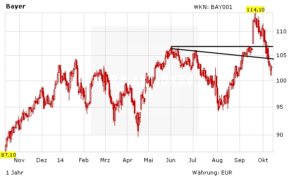 JPMorgan hat Bayer vor Zahlen mit "Overweight" und einem Kursziel von 120 Euro in die Bewertung wieder aufgenommen. Analyst Richard Vosser rechnet in einer Studie vom Mittwoch mit soliden Ergebnissen für das dritte Quartal und einem freundlicheren Jahresausblick. Die Aktie sei attraktiv bewertet. Erwartet gute Nachrichten von der Pharmapipeline des Konzerns dürften 2015 die ohnehin hohen Wachstumschancen dieses Bereichs vergrößern.