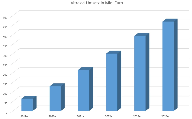 Auch die Analysten trauen Larotrectinib langfristig viel zu. Doch für einen Blockbuster, sprich einen Jahresumsatz von über eine Milliarde Dollar zu erzielen, dürfte es nicht reichen.