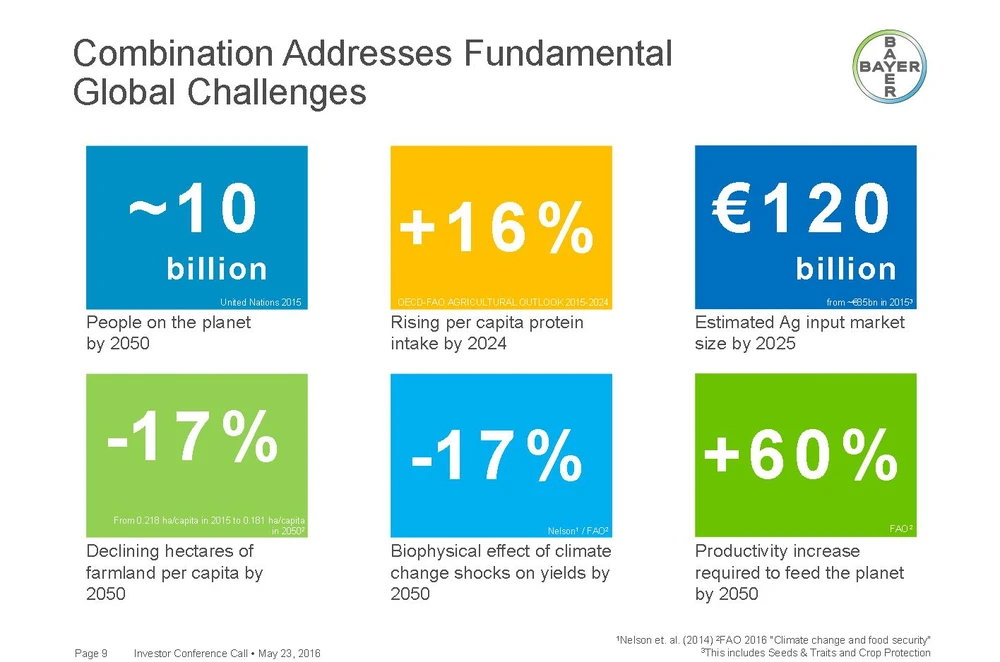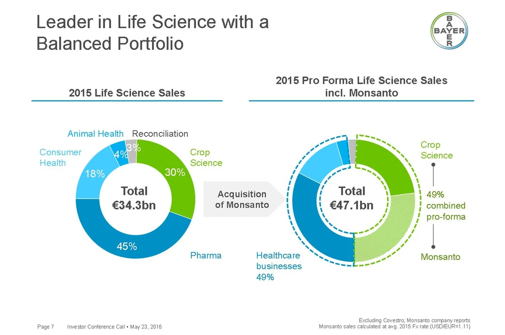 Durch den Deal entsteht der weltweit größte Agrar- und Chemiekonzern der Welt. Kombiniert liegt das Umsatzvolumen auf Pro-forma-Basis bei 47,1 Milliarden Dollar. Knapp die Hälfte davon entfällt auf den Bereich Agrochemie (Crop Science).