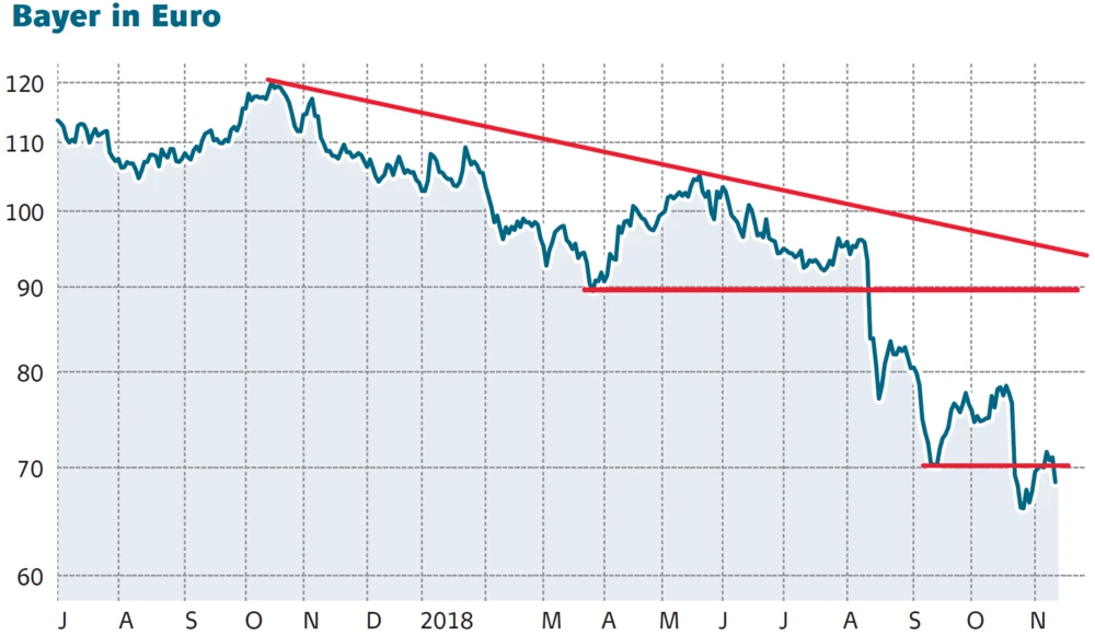 Der Anstieg auf circa 9.300 Klagen im Bezug auf den Unkrautvernichter Glyphosat hält die Anleger unverändert in Atem. Im August hatte ein kalifornisches Geschworenengericht dem krebskranken Hausmeister Dewayne Johnson rund 289 Millionen Dollar Schadensersatz in Aussicht gestellt, ehe die zuständige Richterin diesen auf 78 Millionen Dollar reduzierte. Bayer will in Berufung gehen – doch die Angst vor vergleichbaren Fällen und die damit verbundenen Belastungen für die Bayer-Bilanz bleibt.