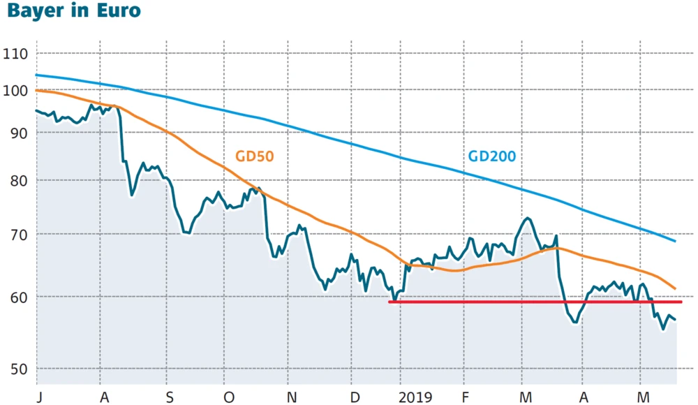 Inzwischen dürfte im Kurs viel Negatives eingepreist sein. Der Börsenwert von Bayer ist auf etwa 53 Milliarden Euro zusammengeschrumpft. Allein die Pharma-Sparte dürfte in etwa der Marktkapitalisierung entsprechen. Hinzu kommen die Tiergesundheit (Animal Health), das Consumer-Health-Geschäft und der verbleibende Anteil am Chemie-Park Currenta.