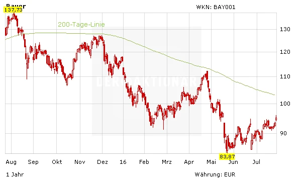 Von März bis Juni 2016 erhöhte Bayer den bereinigten Umsatz um 2,3 Prozent auf 11,8 Milliarden Euro. Das EBITDA vor Sondereinflüssen legte von 2,9 Milliarden Euro vor einem Jahr um fast sechs Prozent auf genau drei Milliarden Euro zu. Überraschend stark wuchs der Gewinn. Die Leverkusener schraubten das Konzernergebnis von 1,2 Milliarden Euro im Vorjahreszeitraum auf jetzt 1,4 Milliarden Euro hoch. Das entspricht etwas mehr als 17 Prozent. In den Sparten Tiermedizin und Consumer Health steigerte Bayer den Umsatz um jeweils knapp vier Prozent. Durch die geplante Übernahme von Monsanto richtete sich die Aufmerksamkeit der Anleger zuletzt vor allem auf den Bereich Crop Science. Dort erwirtschafte das Unternehmen Erlöse auf Vorjahresniveau