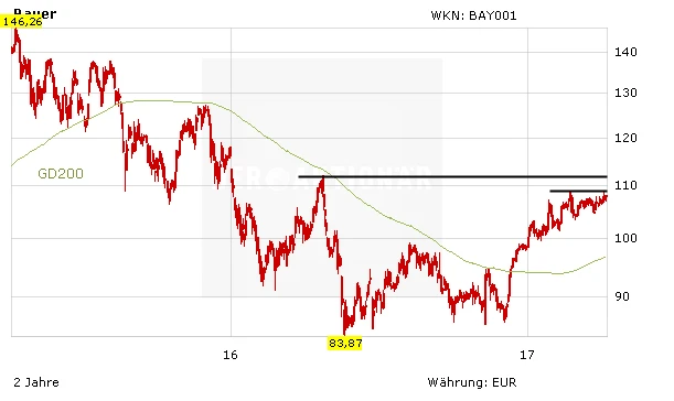Für das Gesamtjahr zeigt sich Monsanto optimistisch. Wie der US-Konzern mitteilte, dürfte der Gewinn je Aktie im noch bis Ende August laufenden Geschäftsjahr am oberen Ende der bisher angegeben Spanne von 4,50 bis 4,90 Dollar liegen. Nach einem langen Poker hatte Bayer im September vergangenen Jahres die Rekord-Übernahme in Höhe von 66 Milliarden Dollar verkündet. Ende des Jahres erteilten die Monsanto-Aktionäre die Zustimmung zu dem Deal. Nun stehen noch die weltweiten Genehmigungen durch die Behörden aus. Mit dem Abschluss ist nicht vor Ende 2017 zu rechnen. Bayer würde durch die Übernahme zur weltweiten Nummer eins bei Saatgut und Pflanzenschutzmitteln aufsteigen. Die Aktie von Monsanto reagiert am Mittwoch mit Gewinnen auf die guten Zahlen. Kurzzeitig notierte das Papier sogar auf einem neuen Mehrjahreshoch. Auch Bayer kann leicht zulegen. Hier deckeln aber nach wie vor die Widerstände bei 108,95 und 112 Euro.