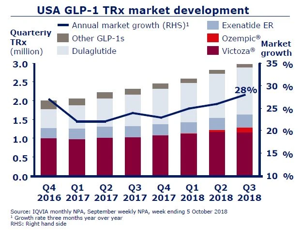 Die Umsätze zogen derweil im Berichtszeitraum um vier Prozent auf 27,8 Milliarden Kronen an. Damit traf der Konzern in etwa die Erwartungen der Analysten. Erfreulich dabei. Besonders die neuen bereits zur Marktreife gebrachten Produkte entwickelten sich sehr stark. Victoza, Ozempic und Tresiba konnten Wachstumsraten zwischen 12 und 18 Prozent ausweisen. Besonders stark entwickelte sich die Einnahmen mit dem Mittel gegen Übergewicht, Saxenda. Hier zog er Umsatz sogar um mehr als 50 Prozent an. Zudem positiv: Für das Gesamtjahr zeigen sich die Dänen nun etwas optimistischer als bisher. Der währungsbereinigte Umsatz soll um vier bis fünf Prozent zulegen. Bislang wurde ein Zuwachs im Bereich von drei bis fünf Prozent in Aussicht gestellt. Das operative Gewinnwachstum vor Wechselkursveränderungen für 2018 soll weiterhin zwei bis fünf Prozent betragen.