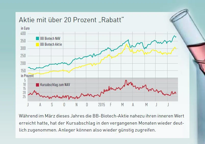 BB Biotech hat sein gutes Händchen für aussichtsreiche Investments bereits mehrfach unter Beweis gestellt. Die Aktie performt nicht nur besser als zahlreiche Fonds, sondern ist eigentlich sogar ein absolutes Schnäppchen. BB Biotech wird nämlich mit einem Abschlag zum eigentlichen Wert der Beteiligungen gehandelt und ist somit mit einer Art Risikopuffer ausgestattet.