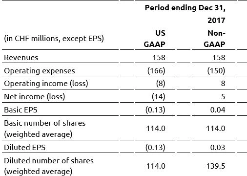 Während die meisten Aktien am heutigen Dienstag ein fettes Minus aufweisen, macht ein kleines Schweizer Unternehmen mit einem Plus auf sich aufmerksam machen. Der Grund: Idorsia hat im Geschäftsjahr 2017 besser abgeschnitten als erwartet. Operativ hat das Unternehmen einen Verlust nach US-GAAP von 8,0 Millionen Schweizer Franken erwirtschaftet. Nach Non-GAAP ergab sein ein Gewinn von 8,0 Millionen Franken. Der Nettoverlust nach US-GAAP betrug 14,0 Millionen Franken, nach Non-GAAP steht ein Gewinn von 5,0 Millionen Franken zu Buche. Analysten hatten im Schnitt einen operativen Verlust von 18,1 Millionen Franken erwartet, netto lag die Durchschnittsprognose bei 22,9 Millionen Franken.