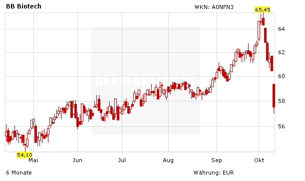 Die Aktie von BB Biotech hatte auch getragen von Indexaufnahmen in der Schweiz zuletzt einen schönen Aufwärtstrend ausgebildet. Im Zuge der Korrektur an den Märkten ist das Papier allerdings zuletzt wieder deutlich unter Druck geraten. Nichtsdestotrotz bleibt die Aktie für Investoren, die ein Einzelinvestment im Biotech-Sektor scheuen, weiterhin das Basisinvestment. Allerdings ist derzeit der Aufschlag zum Inneren Wert mit mehr als 17 Prozent sehr hoch.
