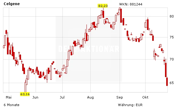 Nachdem sich die Aktie von Celgene in den vergangenen Monaten alles andere als mit Ruhm bekleckert hat, hat das Papier zumindest kurzzeitig am heutigen Donnerstag ein kleines Lebenszeichen von sich gegeben. Im Laufe des Nachmittags wurden die Kursgewinne allerdings im Zuge der allgemeinen Marktschwäche aber schnell wieder abverkauft. Dabei waren die Quartalszahlen, die das Unternehmen präsentiert hat, durchaus ordentlich. Der Umsatz kletterte im Berichtszeitraum um 18 Prozent auf 3,89 Milliarden Dollar, der Nettogewinn um 9,5 Prozent auf 1,08 Milliarden Dollar. Analysten hatten im Vorfeld um 40 Millionen Dollar geringere Einnahmen erwartet. Insbesondere die Verkäufe des Psoriasis-Mittels Otezla konnten massiv gesteigert werden. Die Umsätze mit dem Mittel erhöhten sich um mehr als 40 Prozent auf 432 Millionen Dollar.