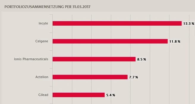 Die Portfolio-Beteiligungen der Schweizer haben im ersten Quartal gute Fortschritte erzielen können. Incyte (+33,3 Prozent in US-Dollar im ersten Quartal 2017), die größte Position im Portfolio von BB Biotech per Ende März 2017, meldete weitere Fortschritte des klinischen Entwicklungsprogramms für seinen IDO1-Hemmer Epacadostat. Die Ankündigung weiterer zulassungsrelevanter Studien, die Epacadostat in Kombination mit Mercks Keytruda und Bristol-Myers Squibbs Opdivo untersuchen, machten Epacadostat zum tonangebenden Wirkstoff für den kombinierten Einsatz mit bereits zugelassenen marktführenden PD1-Antikörpern, so BB Biotech. Phase-II-Daten werden im Juni auf der ASCO-Konferenz präsentiert. Vor Kurzem hat Incyte die Anlegerschaft allerdings mit negativen News zum Mittel Baricitinib zur Behandlung einer milden Form von Rheumatoider Arthritis enttäuscht. Hier darf man gespannt sein, wie es weiter geht. In Europa hatte das Medikament die Zulassung im Frühjahr erhalten.