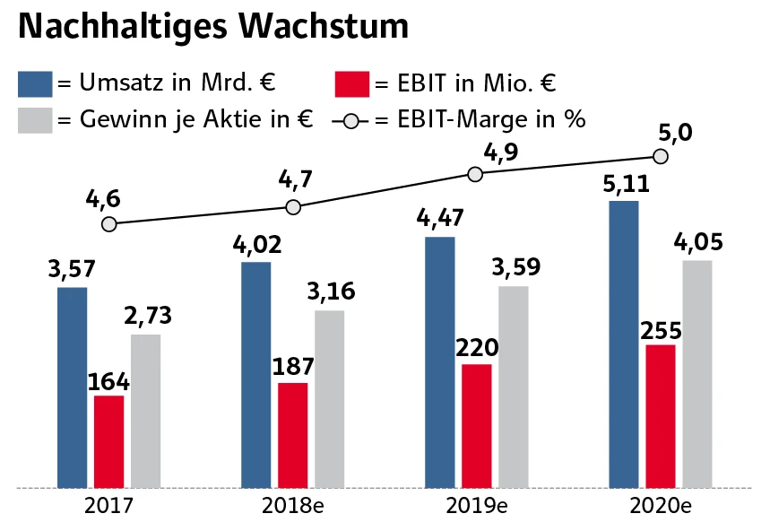 Bechtle ist es dabei erneut gelungen, zahlreiche offene Stellen mit qualifizierten Mitarbeitern zu besetzen. Aufgrund einer erhöhten Kostenbasis sowie der gestiegenen Abschreibungen ging die EBIT-Marge aber von 4,0 auf 3,7 Prozent zurück. Für Bechtle-Vorstand Olemotz sind die Zahlen des ersten Quartals dennoch „eine gute Grundlage für ein erfolgreiches Geschäftsjahr 2018“. Umsatz und Ergebnis sollen gegenüber dem Vorjahr deutlich wachsen. „Wir erwarten eine Fortsetzung der starken Entwicklung im zweiten Quartal, das auch eine Verbesserung der Margenentwicklung aufweisen sollte. Ein starkes erstes Halbjahr stellt somit bereits die Weichen für ein starkes Jahr 2018“, stimmt Warburg-Analyst Wolf zu.