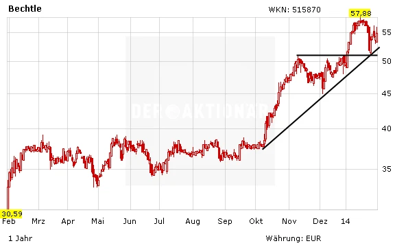 Die Bechtle-Aktie hat seit Mitte Oktober rund 50 Prozent zugelegt. Derzeit notiert die Aktie knapp unterhalb des Allzeithochs. Mit den starken Zahlen im Rücken könnte zwar nun ein neuer Angriff beginnen, vor einem Neueinstieg sollten Anleger jedoch einen Rücksetzer abwarten.