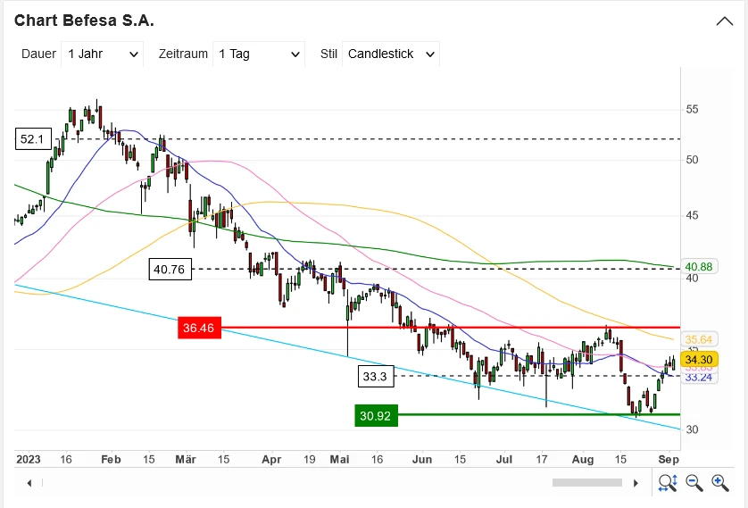 Die Marktteilnehmer scheinen den Worten von Befesa-Boss Javier Molina immer mehr Glauben zu schenken und dürften somit Hauptgrund für die positive Kursentwicklung sein. Molina rechnet damit, dass das Geschäft im zweiten Quartal anzieht und dass die zwei neuen Werke in China in 2023 einen ersten Ergebnisbeitrag liefern werden. Eine Erholung bei den Zinkpreisen dürfte ebenfalls in die Karten des Recyclers spielen und so für eine Fortsetzung der Rally sorgen.