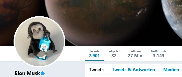 Es war zu vermuten: Tesla-Chef Elon Musk hält es nicht lange ohne seinen Twitter-Acount aus. Gestern stand für seine 27 Millionen Follower noch zu lesen: „Just deleted my Twitter account.“ Heute hat er tatsächlich gelöscht – seinen Beitrag von gestern. Sein Account ist hingegen wieder aktiv – er hat bereits diverse Postings - die Raumfahrt betreffend - geteilt. Sein neues Profilbild: Ein Affe mit Hochprozentigem im Arm. Ob dies eine augenzwinkernde Anspielung darauf ist, dass er seine gestrige Entscheidung nicht in komplett nüchternen Zustand gemacht hat, ist Spekulation. Sicher ist jedoch, dass sich Elon Musk zur Freude vieler entschieden hat, den direkten Kontakt zu seinen Kunden, Fans und Aktionären per Twitter zu halten.