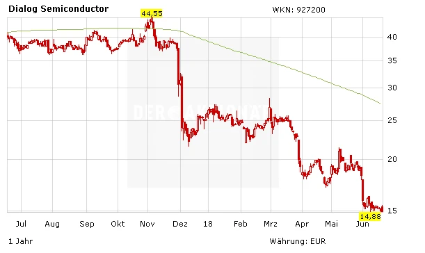Der iPhone-Hersteller hat die Bestellungen für die im iPhone verwendeten Power-Management-Chips reduziert. Dies veranlasste das britisch-deutsche Unternehmen, seinen Umsatz im Jahr 2018 um 5 Prozent nach unten zu revidieren. Bereits zum Ende des Jahres 2017 führte die erste Warnung von Analysten, dass Apple eigene Produkte als Alternative zu den Chips von Dialog entwickeln lässt, zu einem starken Kursverlust der Dialog-Aktie – das Unternehmen verlor im letzten Jahr mehr als die Hälfte des Marktwertes.