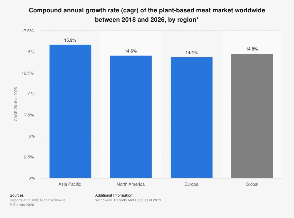 Nicht nur in Deutschland und den USA, sondern auch im asiatischen Raum gewinnt das Thema gesunde- und nachhaltige Ernährung immer mehr an Bedeutung. Bis 2023 soll der Markt für pflanzenbasierte Fleischersatzprodukte in China laut Euromonitor bis auf zwölf Milliarden Dollar wachsen.