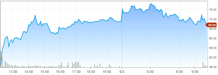 Dass die Aktie zum Börsengang massiv überbewertet war, störte die Anleger nicht im Geringsten. Auch am Freitag geht die wilde Kursrallye unverändert weiter. Bereits der Eröffnungskurs bei 72,00 Dollar lag rund zehn Prozent über dem gestrigen Schlusskurs.
