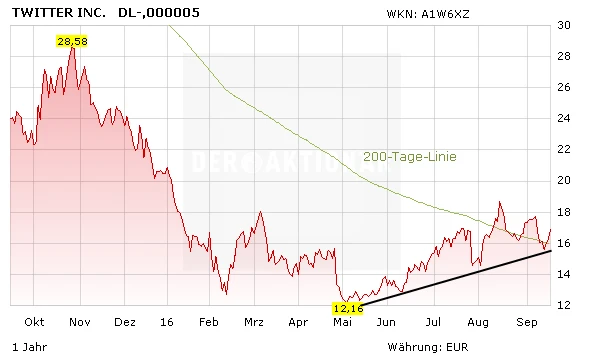 Die Aktie von Twitter kennt seit Mittwoch nur eine Richtung: nach oben. Am Tag nach dem NFL-Spiel verzeichnen die Papiere kurz nach Handelsbeginn in den USA ein Plus von zeitweise fast fünf Prozent. MIt dem heutigen Ausbruch wird das Kaufsignal vom Donnerstag bestätigt. Das kurzfristige zile lautet jetzt 21,13 Dollar.