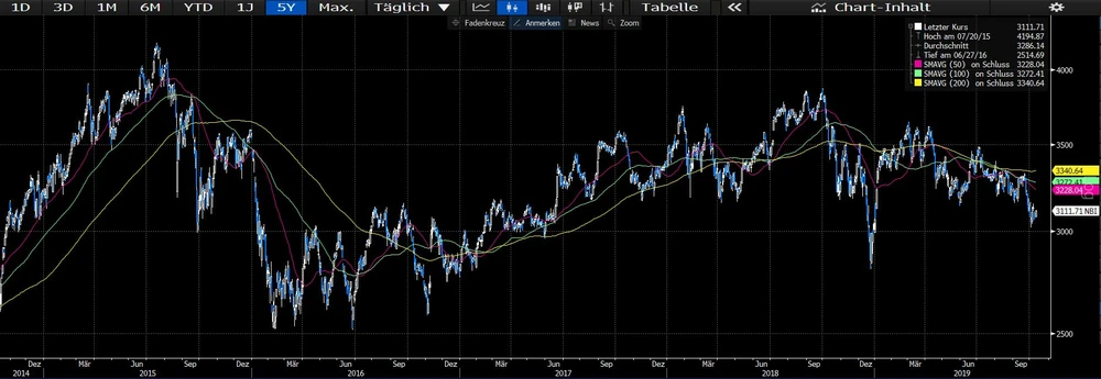 Zugegeben: BioNTech hat vor dem Börsengang die Preisspanne herabgesetzt und letzendlich die Aktien am unteren Ende der Spanne bei 15,00 Dollar platziert. Dies dürfte vor allem dem schwachen Umfeld für Biotech-Aktien geschuldet sein. Seit Monaten kommt der Index nicht vom Fleck und notiert unweit von der wichtigen 3.000-Punkte-Marke entfernt.