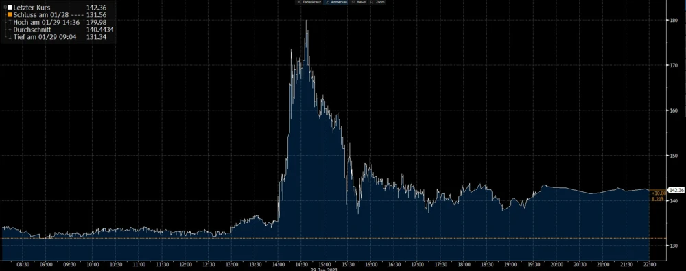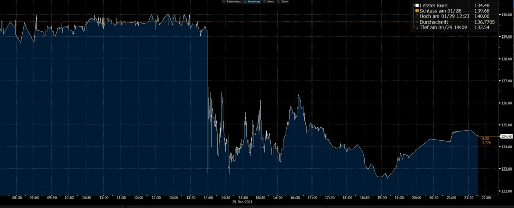 Völlig losgelöst zeigte sich nach Bekanntgabe der etwas schwächeren Impfstoff-Resultate von J&J die Aktie von Moderna. Im vorbörslichen US-Handel kannte die Biotech-Aktie am Freitag kein Halten mehr. Zum Handelsende verblieb ein Kursplus von 8,5 Prozent an der Nasdaq.