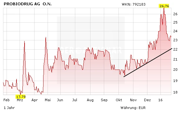 Gelingen Probiodrug tatsächlich entscheidende Erfolge, dürfte sich die Gesellschaft ein ordentliches Stück am Alzheimermarkt sichern können und die Aktie schon bald nach oben durchstarten. Vor Kurzem ist die Aktie nach der zuvor starken Entwicklung auf Konsolidierungskurs gegangen. Es ist durchaus wahrscheinlich, dass noch einmal der kurzfristige Aufwärtstrend getestet wird. Die aktuelle Phase sollten Anleger zum Einstieg nutzen.