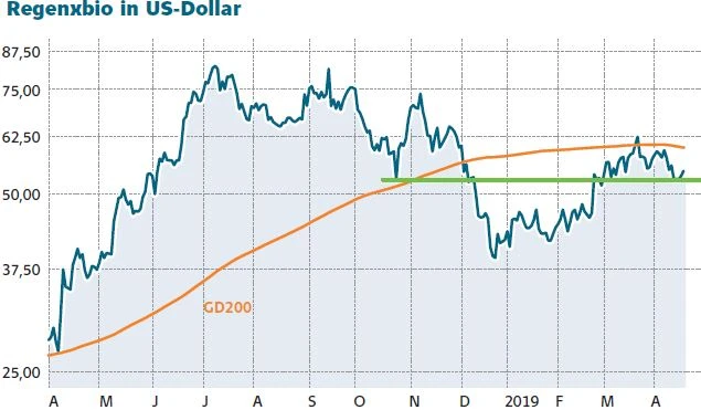 Im Gentherapie-Bereich wartet ein heißer Übernahmekandidat. Hier könnte Novartis, die vor Kurzem bereits ihre Bereitschaft signalisiert hat, im einstelligen Milliardenbereich Zukäufe tätigen zu wollen, bei Regenxbio zuschlagen. Das Unternehmen ist Spezialist im Bereich AAV-Vektor-Gentherapien und hat hier gleich mehrere heiße Eisen im Feuer. Besonders interessant: RGX-314 gegen die altersbedingte Makuladegeneration (AMD), die häufigste Ursache für eine Erblindung. Bis dato nutzen Ärzte unter anderem Lucentis von Novartis zur Therapie der Netzhauterkrankung per Injektion ins Auge. Regenxbio will die Behandlungsform revolutionieren. Zwar befindet sich das Projekt noch in einer sehr frühen Phase, die ersten Daten waren allerdings äußerst vielversprechend. Derzeit läuft eine Phase-1/2a-Studie.