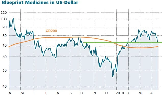 Nachdem Eli Lilly mit Loxo einen Top-Player aus dem Bereich Präzisionsonkologie weggeschnappt hat, rückt der nächste heiße Kandidat in den Fokus. Blueprint Medicines hat eine ähnliche Pipeline wie Loxo. Das Biotech-Unternehmen will hoch hinaus. Bis Ende 2020 plant Blueprint mit zwei zugelassenen Produkten, vier ausstehenden Vertriebsgenehmigungen sowie sechs weiteren Produktkandidaten in der klinischen Überprüfung. Spannend wird es bereits Ende Mai: Dann dürfte die Gesellschaft wichtige Daten auf dem ASCO-Meeting präsentieren.
