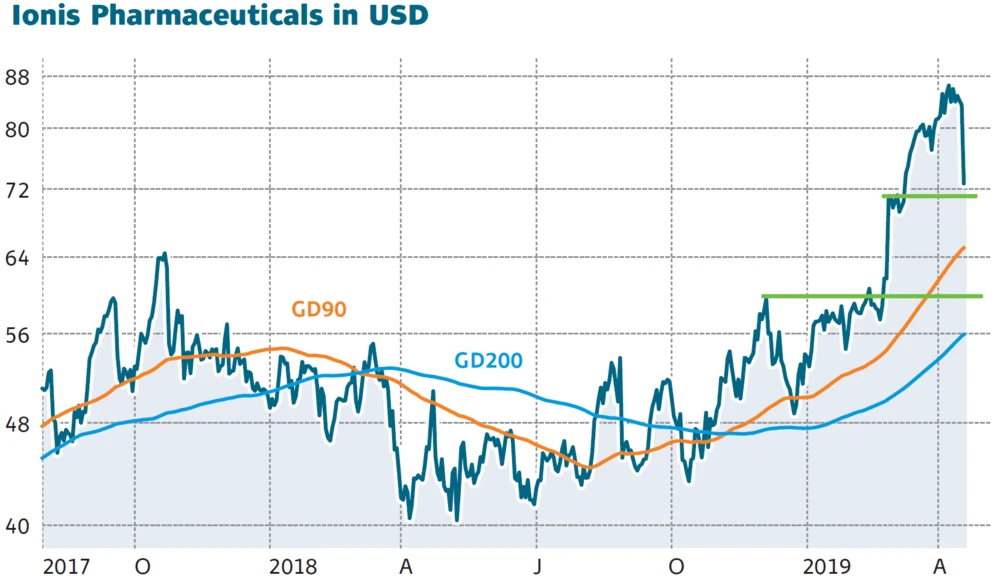 Doch Novartis steht in den Startlöchern, dieses Jahr ist noch mit der Zulassung der Gentherapie Zolgensma zu rechnen. Dann dürfte das dynamische Umsatzwachstum von Spinraza bei Biogen nachlassen – und auch die Tantiemen für Ionis sollten dann nicht mehr so stark sprudeln.