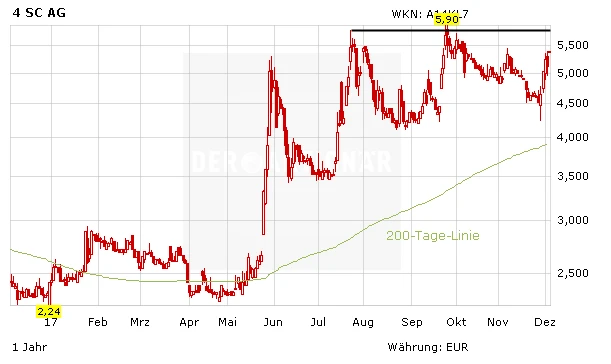 Die Zwischenmeldung zur RESMAIN-Studie nimmt die 4SC-Aktie vorbörslich positiv auf und klettert rund fünf Prozent. Damit nähert sich der Biotech-Hot-Stock einer breiten Widerstandszone im Bereich von 5,90 Euro.