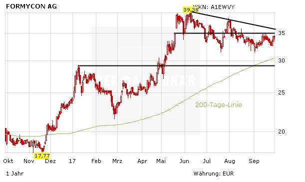 Doch auch kurz- bis mittelfristig lohnt sich ein Blick auf die Formycon-Aktie: Gelingt der Sprung über den Widerstand bei 35 Euro winken schnelle Anschlussgewinne bis zum Rekordhoch bei 39,38 Euro. Auf dieses Szenario setzt DER AKTIONÄR auch im Real-Depot.