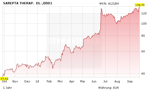 Das damalige Problem im Zusammenhang mit unerwünschten DNA-Fragmenten wurde von Sarepta behoben. Und bereits nächste Woche wird es hochspannend: Am 4. Oktober wird es ein Update zu Sareptas Gentherapie-Programm geben. Hierzu wird es anlässlich des 23. International Annual Congress of the World Muscle Society (WMS) in Argentinen um 13 Uhr MEZ eine Web-Konferenzschaltung geben. Die Veranstaltung wird live im Internet unter der Investor-Relations-Abteilung der Sarepta-Website unter www.sarepta.com übertragen.