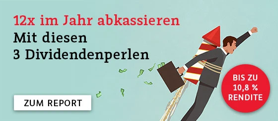 Mehr zu diesen 3 Top-Titeln mit einer stattlichen Dividendenrendite von bis zu 10,8 Prozent, mit denen Sie 12-mal im Jahr Kasse machen, erfahren Sie jetzt exklusiv im neuen Aktien-Report „Dickes Dividenden-Depot“.