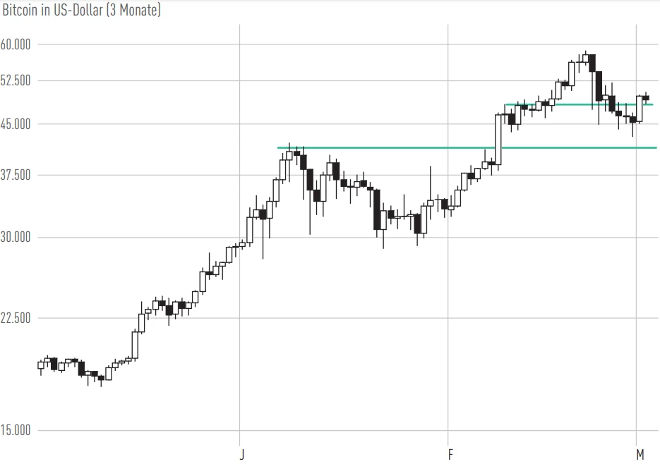 Dass zuletzt auch immer mehr institutionelle Anleger in Bitcoin investiert haben und große Konzerne wie Tesla und Square ihn in die Bilanz aufgenommen haben, hat das Standing der Digitalwährung massiv gestärkt und zum jüngsten, rasanten Kursanstieg beigetragen. Die wachsende Nachfrage seitens der Investoren sorgt zudem dafür, dass sich auch traditionelle Investmentbanken mit dem Thema auseinandersetzen (müssen).