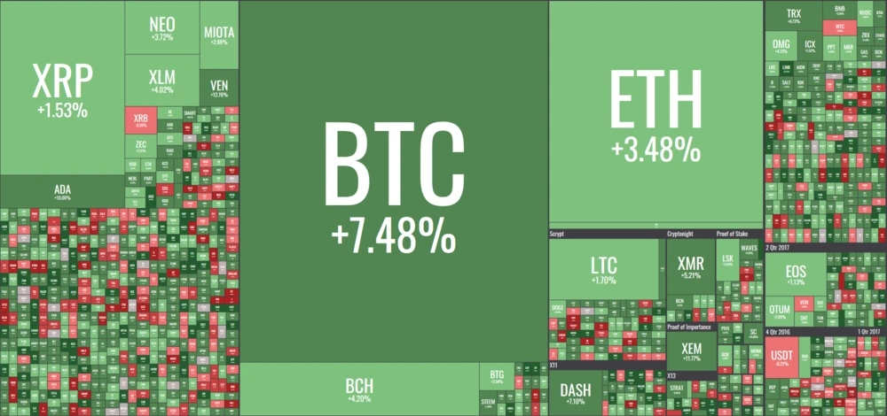 Aber nicht nur der Bitcoin zeigt sich am Wochenanfang freundlich. Grüne Vorzeichen den Krypto-Markt. VeChain gehört auf 24-Stunden-Sicht unter den Top 20 mit einem Plus von rund 13 Prozent zu den größten Gewinnern. Die junge Kryptowährung hat ein vielversprechendes Konzept und verkündete jüngst eine Partnerschaft mit dem bayrischen Autobauer BMW.