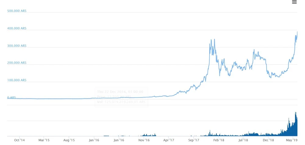 Nicht so in Argentinien. Betrachtet man den Bitcoin-Kurs ausgedrückt in Argentinischen Peso markiert der Preis ein neues Allzeithoch.