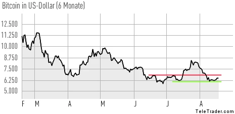 Das vor kurzem noch so aussichtsreiche Chartbild hat durch den erneuten Rücksetzer freilich einen herben Dämpfer erhalten: Glaubte man vor knapp zwei Wochen schon wieder fünfstellige Kurse am Horizont erkennen zu können, gilt es nun zunächst wieder die Widerstände im Bereich von 6.800 und 7.700 Dollar zurückzuerobern.
