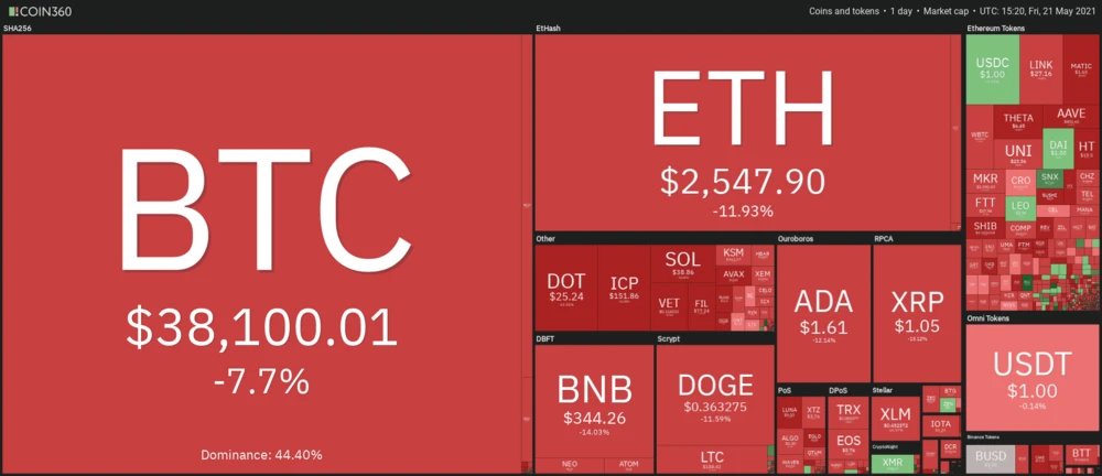 Dennoch bedeutet es für die spürbare Erholung vom heftigen Rückschlag zur Wochenmitte einen erneuten Dämpfer: Nahezu alle größeren Kryptowährungen rutschen am Freitagnachmittag wieder deutlich ins Minus. Der Bitcoin fällt um fast zehn Prozent und rutscht damit wieder deutlich unter die Marke von 40.000 Dollar.