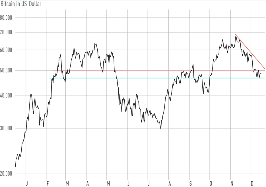 Während Ethereum die 4.000-Dollar-Marke inzwischen zurückerobern konnte, steht der Sprung über die psychologisch und charttechnisch wichtige 50.000er-Marke beim Bitcoin noch bevor. Kurzfristig sieht es damit zunächst nach einer Fortsetzung der volatilen Seitwärtsphase aus.