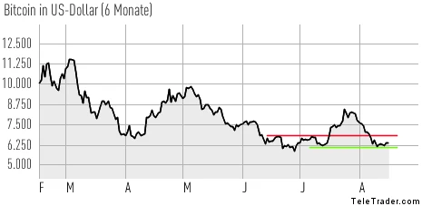 Nicht ganz so stark wie bei Ethereum und Ripple, aber dennoch beachtlich fällt der rund fünfprozentige Rebound beim Bitcoin aus. Zeitweise hatte der Kurs am Dienstagvormittag bereits wieder die Marke von 6.500 Dollar anvisiert. Kurzfristig ist die Gefahr eines Abrutschens in Richtung des bisherigen Jahrestiefs bei 5.826 Dollar und darunter damit gebannt – bis auf zwei kurze Dips hat sich die wichtige Marke von 6.000 Dollar am Montag als zuverlässige Unterstützung erwiesen.