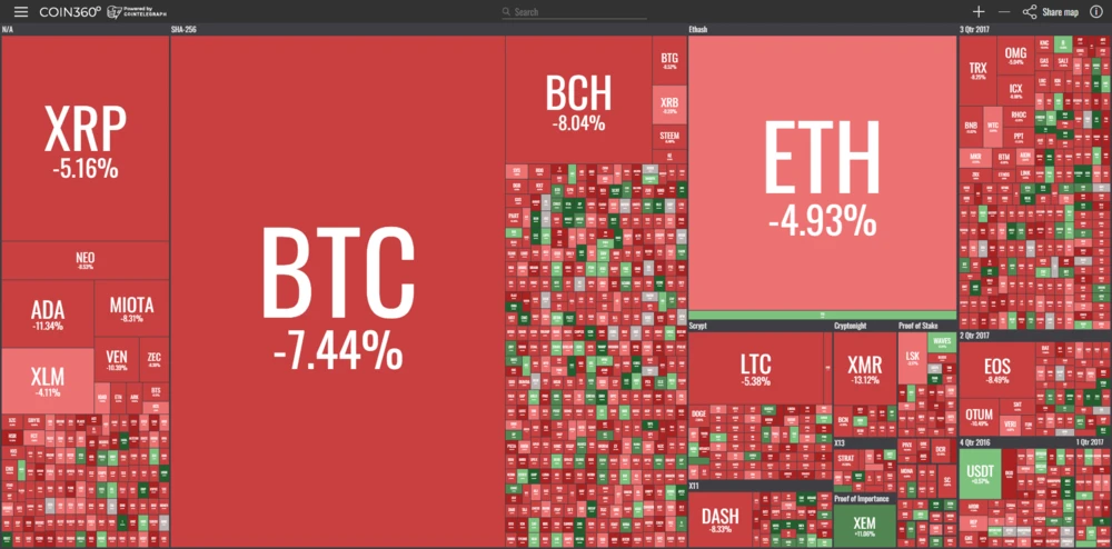 Die Angst vor strenger Regulierung ist zurück und hat den Kryptomarkt fest im Griff. Nach einer relativ ruhigen Woche ohne stärkere Ausschläge bei den Top-Coins geht es seit gestern bei den meisten Digitalwährungen teils deutlich bergab.