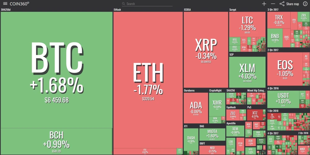 Hier hat sich der Kurs gefangen und befindet sich aktuell wieder in einer Seitwärtsbewegung. Der gesamte Krypto-Markt sieht derweil eher durchwachsen aus. Der größte Gewinner der letzten 24 Stunden ist Stellar mit rund vier Prozent.