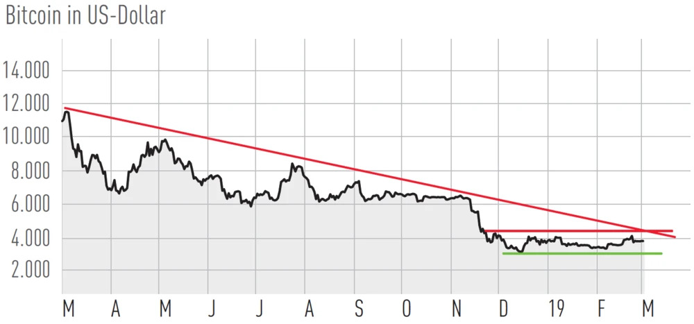 Als „sicherer Hafen“ dürfte Bitcoin und Co auch weiterhin vor allem in Regionen mit extremer Inflation und unzureichender Infrastruktur eine Rolle spielen. Um wieder für Spekulanten attraktiv zu werden, müsste der Bitcoin aus seiner gegenwärtigen Lethargie ausbrechen. Der zwischenzeitliche Sprung über die 4.000-Dollar-Marke in der Vorwoche hat sich als Fehlsignal entpuppt. Krypto-Investoren brauchen weiterhin Geduld.
