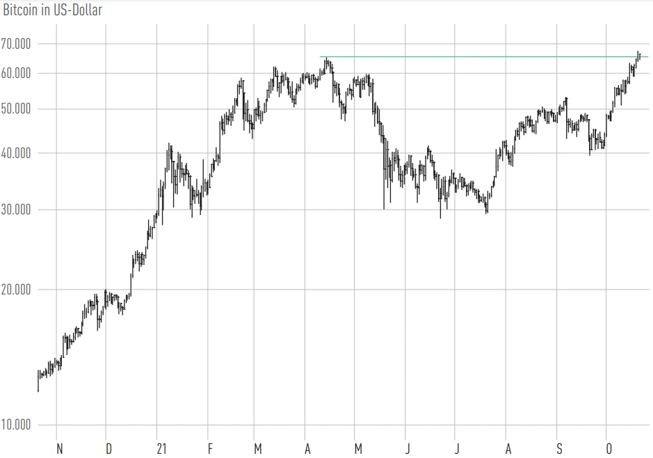 Der langersehnte Durchbruch in Sachen Bitcoin-ETF hat auch den Kurs der digitalen Leitwährung beflügelt und am Mittwoch bei 66.930 Dollar ein neues Allzeithoch beschert. Aktuell notiert der Kurs knapp 1.000 Dollar darunter, was auf 24-Stunden-Sicht aber dennoch einem Plus von fast drei Prozent entspricht.