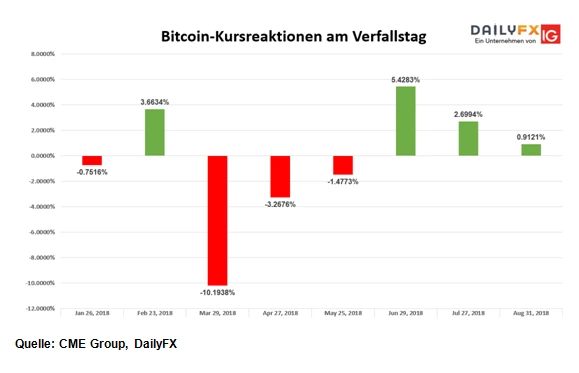 Nachdem nun der Augustkontrakt verfallen ist, sind die Kursreaktionen am Fälligkeitstag ausgeglichen. "Die Messung der Rendite aller bisherigen Verfallstermine zeigt, dass bei vier von insgesamt acht Verfallsterminen der Bitcoin-Kurs gefallen ist. Im Durchschnitt gab der Bitcoin am Verfallstag um rund 0,38 Prozent nach. Natürlich ist aufgrund der noch sehr kleinen historischen Stichprobe keine statistisch verlässliche Auswertung durchführbar. Unterstützt werden die empirischen Beobachtungen jedoch, durch die Zentralbank von San Francisco, die in einer Kooperationsstudie mit der Stanford Universität aufzeigte, dass die Einführung des Terminkontraktes einen erheblichen Effekt auf den Bitcoin-Kurs hat", sagt Salah Bouhmidi.