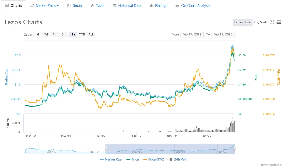 Tezos (XTZ) ist ein Projekt zum Aufbau einer selbstverwaltenden, dynamischen Blockchain-Plattform, welche den Abschluss von intelligenten Verträgen (Smart Contracts) ermöglichen soll. Die Rallye bei Tezos kennt derzeit kein Halten. Seit der Bekanntgabe der Kooperation mit der kalifornischen Venture-Capital-Firma Andra Capital hat sich Tezos im neuen Jahr mehr als verdoppelt. Einem bekannten und finanzstarken Krypto-Insider gefällt das Tezos-Projekt besonders gut, da die „Foundation genug Geld hat, um vieles umzusetzen“ und sich die Chain ohne Fork selbst upgraden könne. Es sei aus technologischer Sicht sein „Lieblingsprojekt“. Tezos auf 52-Wochen-Sicht über 580 Prozent zugelegt.