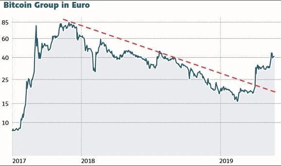 Die Aktie der Bitcoin Group hält sich auch am heutigen Mittwoch stabil. Während der Bitcoin knapp unter der Marke von 8.000 US-Dollar markiert, liegt der Kurs der Bitcoin Group bei 41,39 Euro.