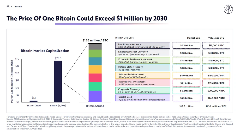 Im neuen AKTIONÄR TV wird der Chart einem Check unterzogen und die „sehr optimistische“ ARK-Prognose (Grafik) besprochen.